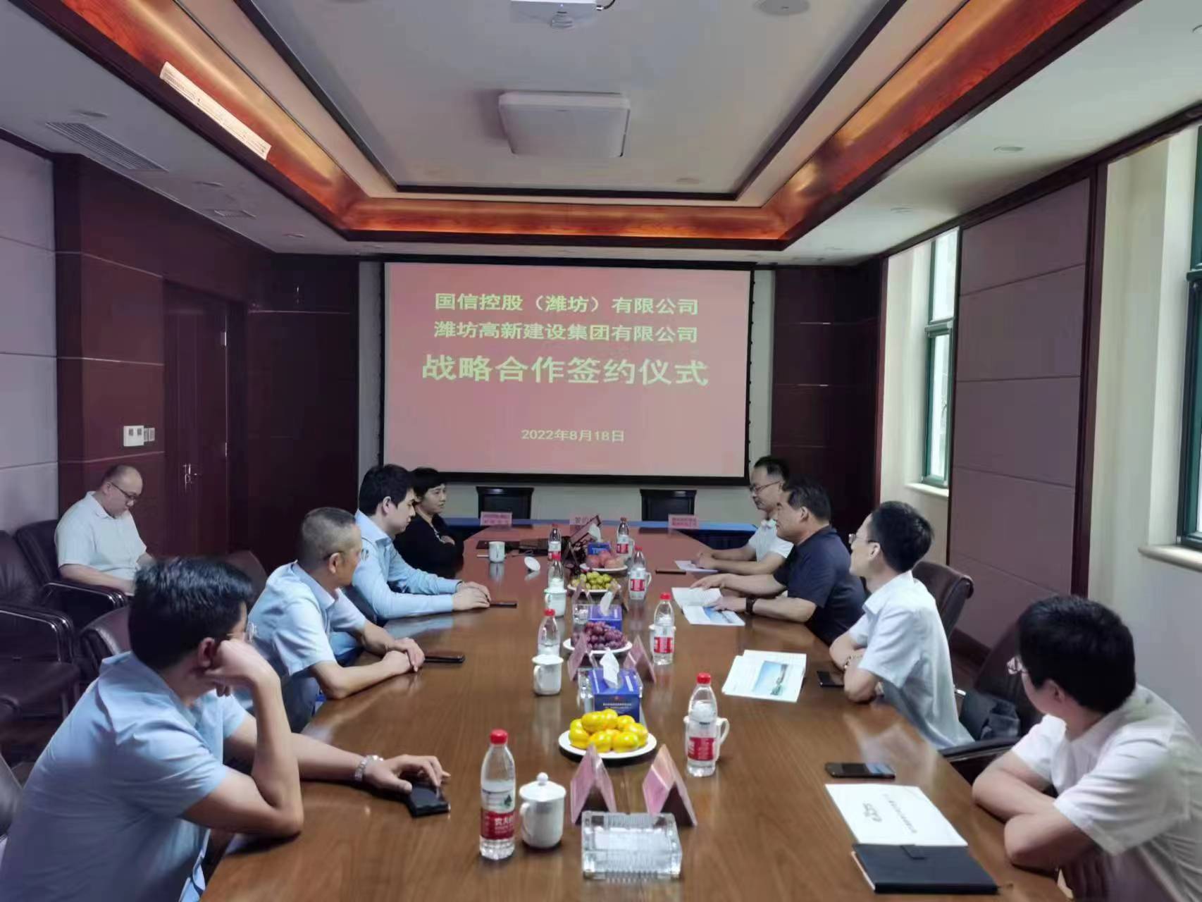 ? ? ? 2022年8月18日,國(guó)信控股(濰坊)有限公司與濰坊高新建設(shè)集團(tuán)有限公司簽署戰(zhàn)略合作協(xié)議,雙方擬利用各自資源優(yōu)勢(shì),以建設(shè)項(xiàng)目為依托,通過(guò)建設(shè)項(xiàng)目管理咨詢、企業(yè)管理咨詢、供應(yīng)鏈金融等模式開(kāi)展深度合作,實(shí)現(xiàn)互惠共贏。? ?